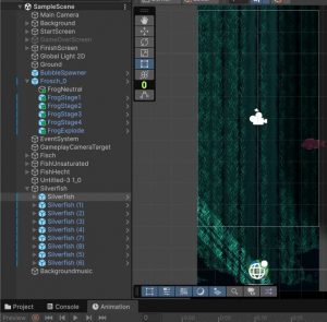 • Performance: Um Ressourcen zu sparen, programmierten wir das Spawning-System neu. Objekte wie Luftblasen werden nun dynamisch im Bereich der Kamera generiert, statt das gesamte Level im Voraus zu befüllen.
