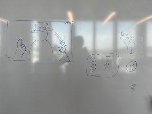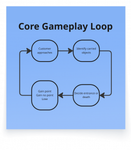 Für die Gestaltung der Kunden und Kundinnen haben wir uns entschieden, verschiedene Versionen zu zeichnen – eine für „gute“ Kundschaft und eine für „schlechte“ Kundschaft. Die gute Kundschaft muss links aus dem Bild gewunken werden, während die schlechte Kundschaft erschossen werden muss. Durch die Vielzahl an Assets konnten wir auch einen grösseren Zufalls-Generierungsbereich festlegen wobei die letzten 5 Personen nicht erneut angezeigt werden.