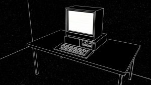 I then started working on the models that I will use in the actual project. A door, a desk and a computer (based on the IBM PCjr) are the elements composing the main room.