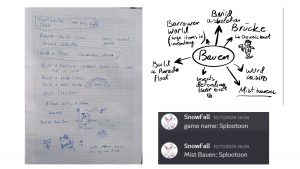 Zu Beginn hatten wir sehr viele Ideen zum Begriff „bauen“, einige Beispiele waren: „Turm Bauen“, „Build a Bear“ und „Damm Bauen“. Wir haben uns schliesslich alle für „Mist Bauen“ geeinigt, da wir uns für diese Idee schnell mal etwas konkreteres vorstellen und ein Konzept entwickeln konnten, das allen gefiel.
