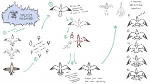Da die Idee mit dem färben der Map von Splatoon inspiriert war, und das Wort „Sploot“ in einem Seemöwen Meme für ihre Kacke verwendet wurde (in diesem Dev Log wird ab jetzt nur noch das Wort „Sploot“ dafür verwendet), kamen wir auf den Namen „Mist Bauen: Splootoon“ für unser Game.