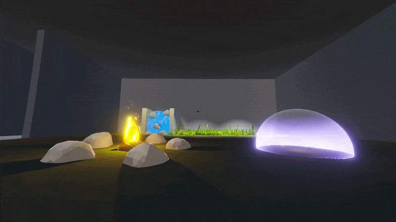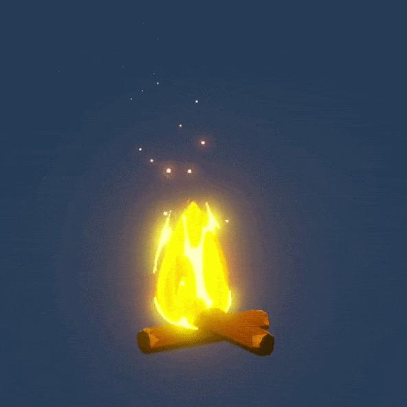 Lastly I added a point light for the dynamic shadows and a really simple particle system for the sparks that fly away from the fire.