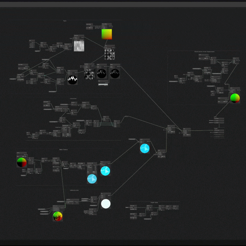 As you can see, the setup for the waterfall (or river) has gotten rather complicated, but I think also showing the Shader Graph help to understand a bit better why it has taken me a whole week to create 1 Shader from start to finish. 😉