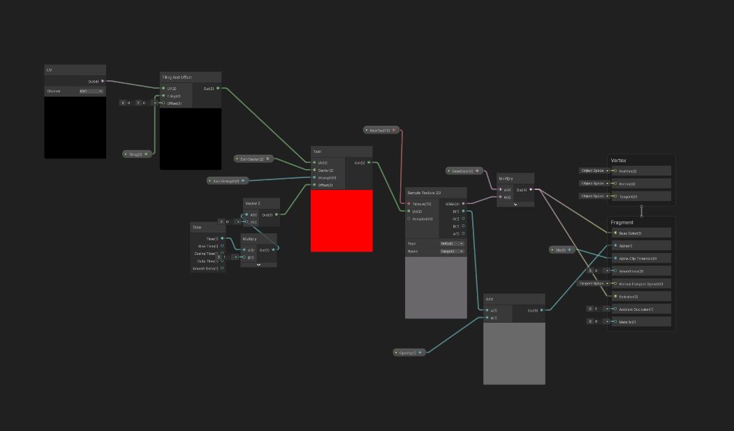 The ShaderGraph setup is rather simple and serves as a basis for creating the VFX-Effect. This compares a bit to the FireplaceShader where a similar technique was used.