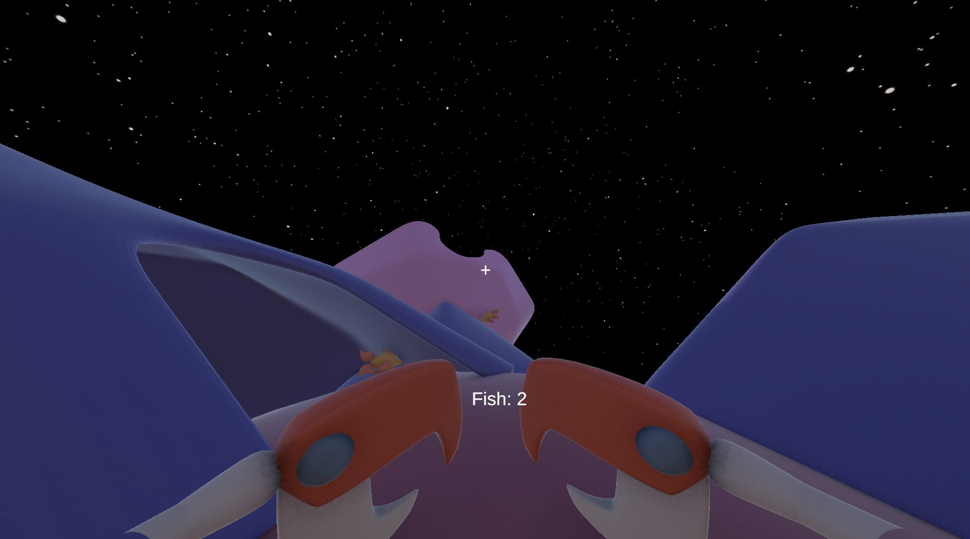 The fish now have the swimming animation and try to actively swim away from you. But not so fast, the player now has a gravity rod (claw) with which you can pull the fish towards yourself. The gravity rod is also useful when you overshoot when jumping between planets. Now you can pull yourself towards your chosen planet.
