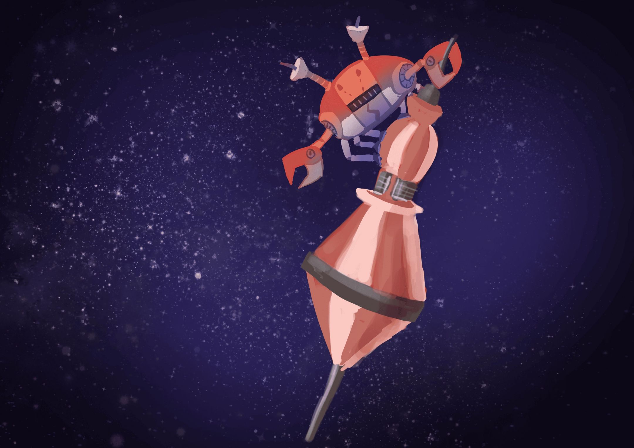 Our Idea was that you could jump from planet to planet with your crabship in first person. This would require a bit of skill. The game could be described as a cozy platformer. All the planets revolve around your space station, the buoy where you store your resources.