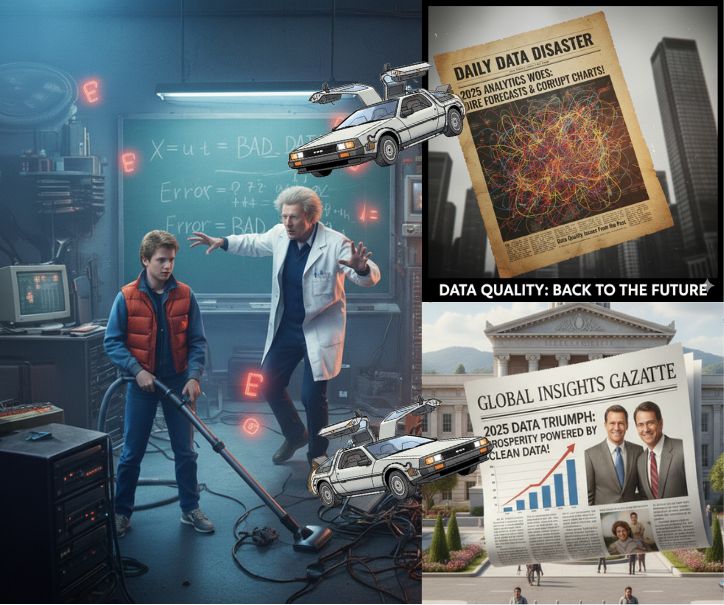 Marty McFly und Doctor Emmet Brown haben es in der «Back to the Future»-Trilogie vorgemacht: Manchmal muss man einen Schritt zurückgehen und einige Dinge aus der Vergangenheit korrigieren, um die Zukunft besser zu gestalten. Genau gleich verhält es sich mit der Datenqualität in einem Unternehmen: Nur mit einer sauberen Datenlage (aus der Vergangenheit) lassen sich nützliche und aussagekräftige Auswertungen (für die Zukunft) erstellen. Dazu braucht es nicht einmal einen DeLorean mit Fluxkompensator!