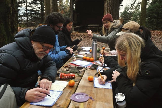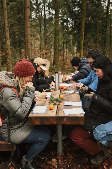 Right next to our campus there is this small forest that still feels calming, even with all the industrial noise around it. When you walk in, you hear birds, leaves cracking, and your pace just slows down. Every time I go there with a group, I realise how much I enjoy organising these walks. Thanks to the Master Service Design of the HSLU which definitely helped me find this new skill and pleasure.